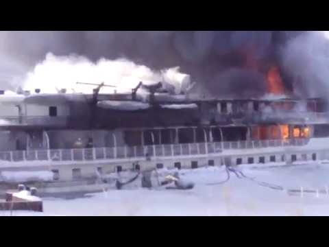 Информация канала LIFE NEWS.Круизный теплоход "Князь Донской" горит под Йошкар-Олой. Очевидцы сняли крупный пожар на видео.