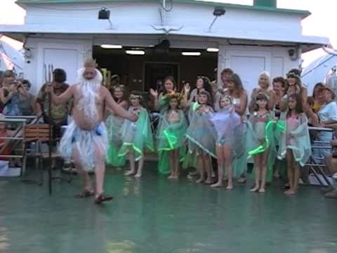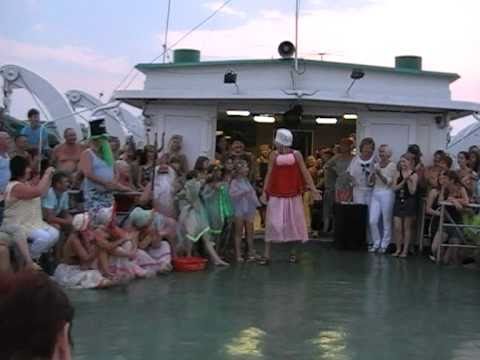 А теперь немного развлекательной программы, точнее, самый главный праздник на теплоходе - "День Нептуна" (хотя если честно, то по-моему, на "Мисс Круиз" народа собралось даже больше, чем на День Нептуна. Или просто на Дне Нептуна было задействовано очень много артистов-туристов). Но это отступление.