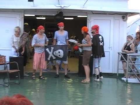 Итак. В назначенный час все собрались, ведущие начали праздник, стали звать Нептуна, но тут... пираты! К счастью, пришел "капитан" с юнгами, пиратов связали, произвол прекратили.